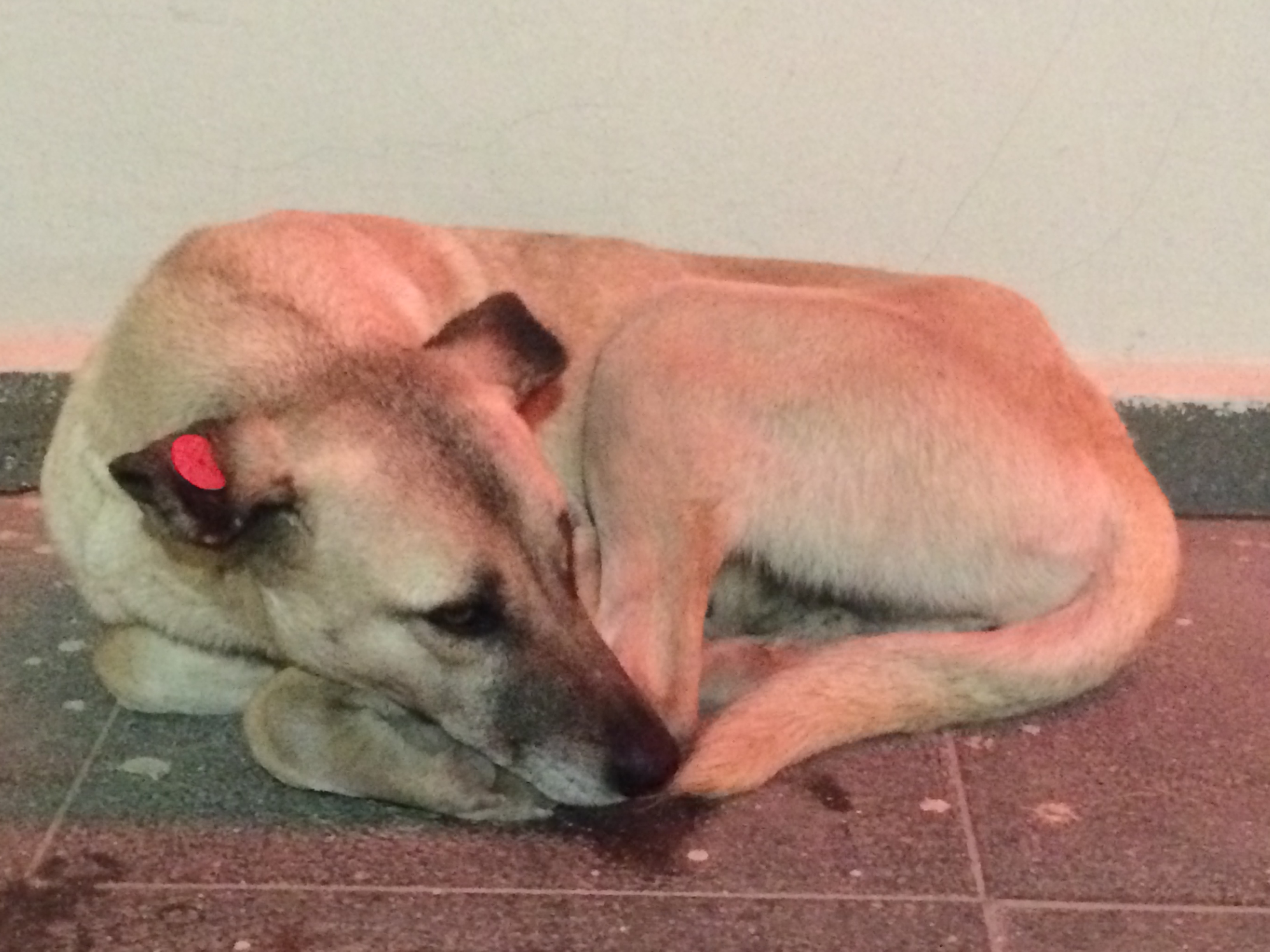 Lucy wouldn’t eat food from a bowl when placed down. Confused because I could see her rib cage sticking out I discarded the food into my rubbish bag away from the tent. She immediately went over and ate from the rubbish bag! Most of Lucy’s food probably came from rubbish and she did get very happy around bins! It’s been a priority for me teaching her to stay away from rubbish bins. It’s well known about poison being put down around bins which cause slow and agonizing deaths.
